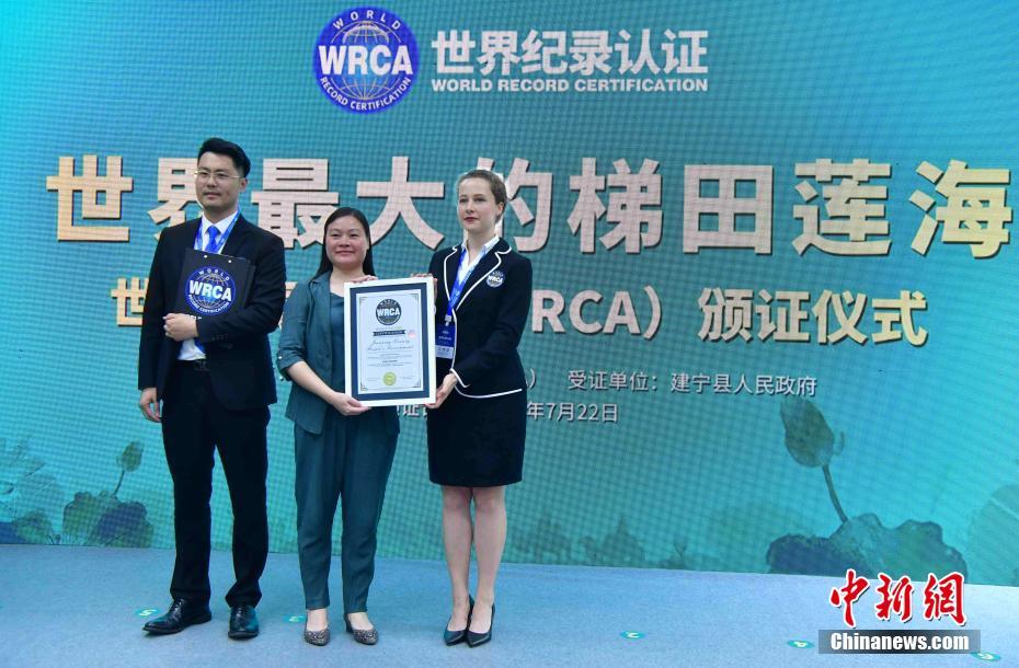 福建建宁坪上梯田莲海被认证为“世界最大的梯田莲海”