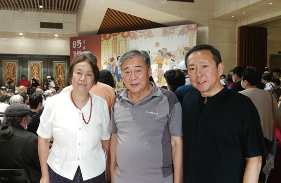 李丹阳博士(左)与朱德后人(中)、周恩来后人(右)在展会现场。