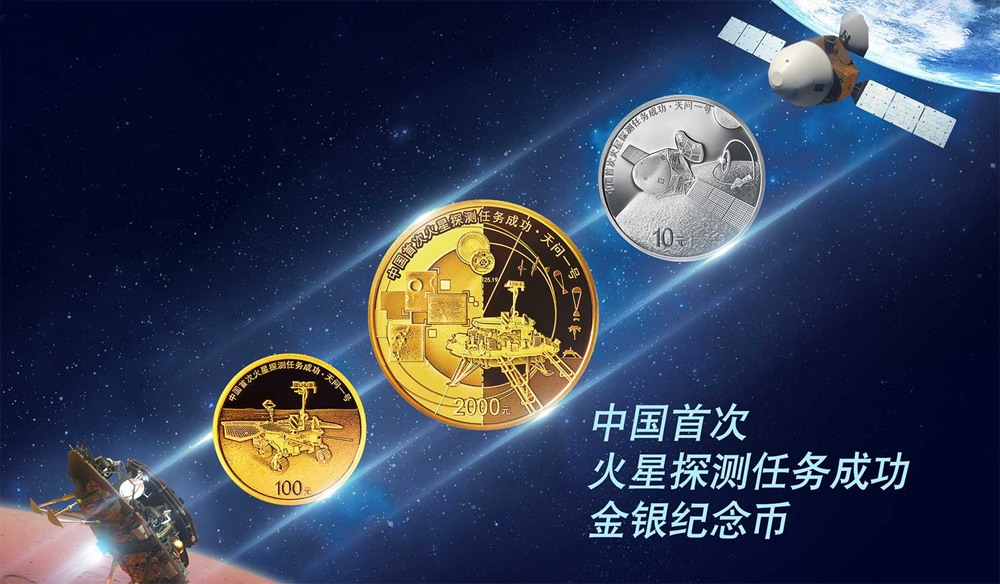中国首次火星探测任务成功金银纪念币。(图片来源:中国金币总公司官网截图)