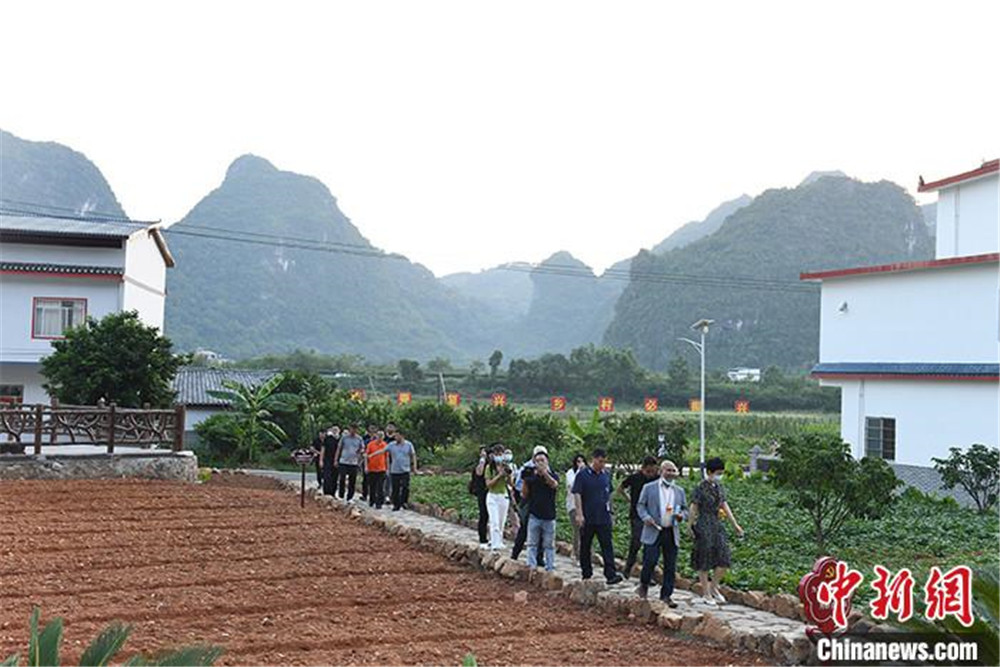 图为9月8日,驻华使节考察当地少数民族脱贫示范村——阳朔县高田镇喜龙村。(图片来源:中新网)