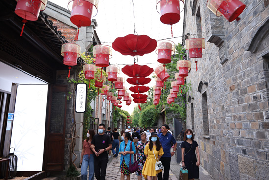 9月20日,民众在南京城南老街参观游玩。(图片来源:中新社)