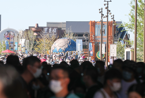 9月21日,众多游客进入环球影城度假园区。(图片来源:中新社)