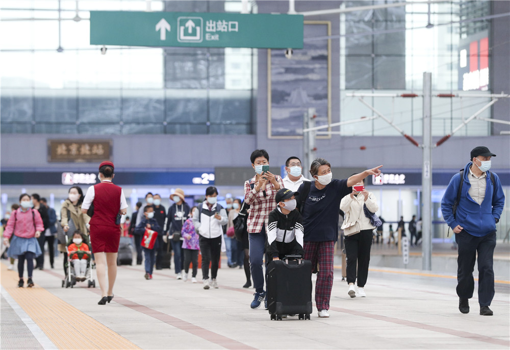 乘客在北京北站进站乘车。(图片来源:中新社)