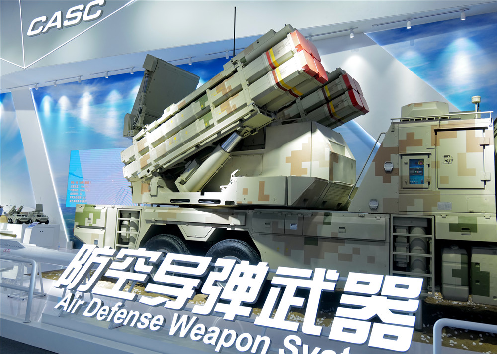 中新社报道,航展上,中国航天科工集团展出的全空域防空体系包括HQ-9BE远程防空导弹武器系统,FD-2000中远程防空导弹武器系统,FM-3000中近程防空导弹武器系统,HQ-17AE近程防空导弹武器系统,FK-3、FK-2000地空导弹武器系统,FL-2000C、FL-1000等末端防空导弹武器系统,以及QW-2、QW-12、QW-18、QW-19等便携式防空导弹武器系统。