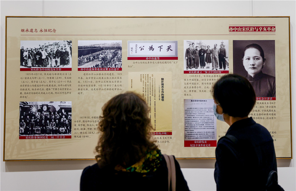 10月11日,《孙中山宋庆龄与辛亥革命》文物图片展在湖北武汉辛亥革命博物馆开展。图为参观者观看展览。(图片来源:中新社)
