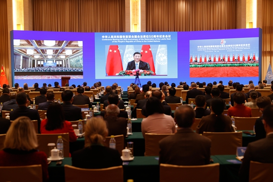 10月25日,中国国家主席习近平在北京出席中华人民共和国恢复联合国合法席位50周年纪念会议并发表重要讲话。(图片来源:中新社)