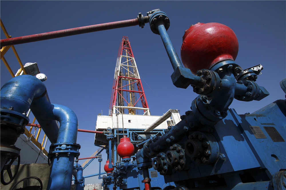 图为塔里木油田上的钻井平台。(图片来源:中新社资料图)
