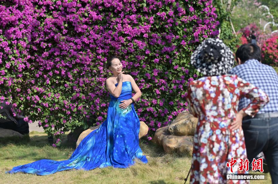 10月27日,广西南宁青秀山叶子花园内,三角梅迎来盛花期,各色三角梅绽放如彩色花海,吸引大批游人前往观赏。(图片来源:本文图片均自中新网)