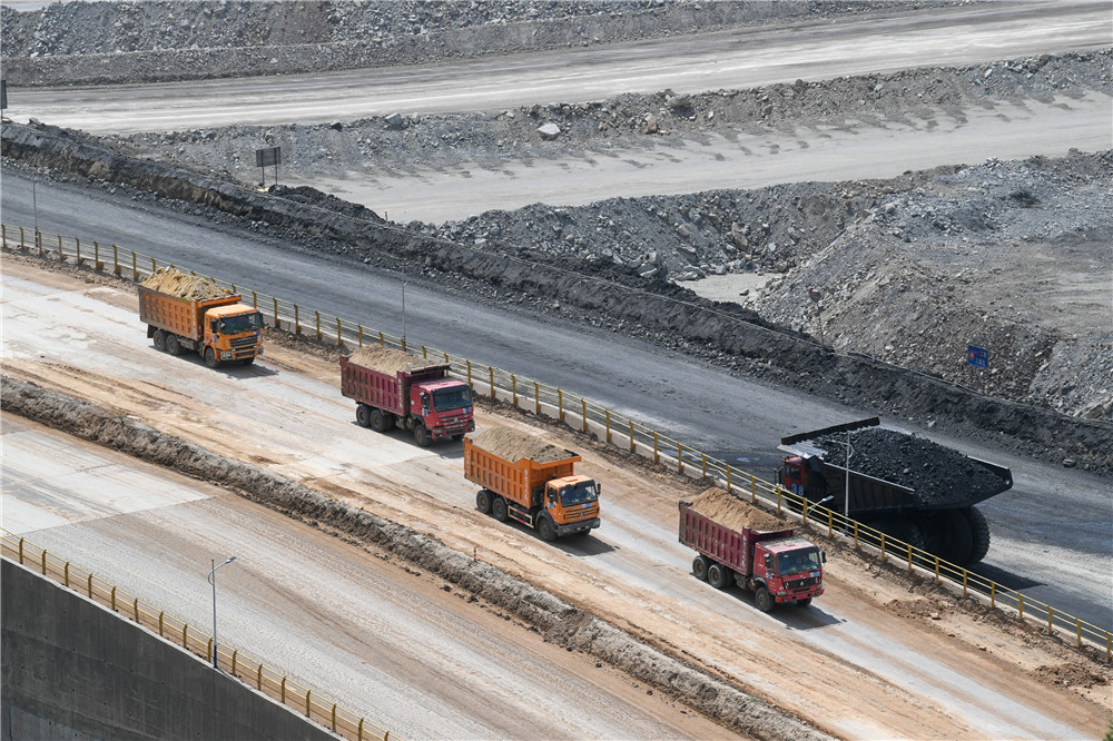 卡车在内蒙古鄂尔多斯市准格尔旗黑岱沟露天煤矿内作业(5月26日摄)。(图片来源:新华社)