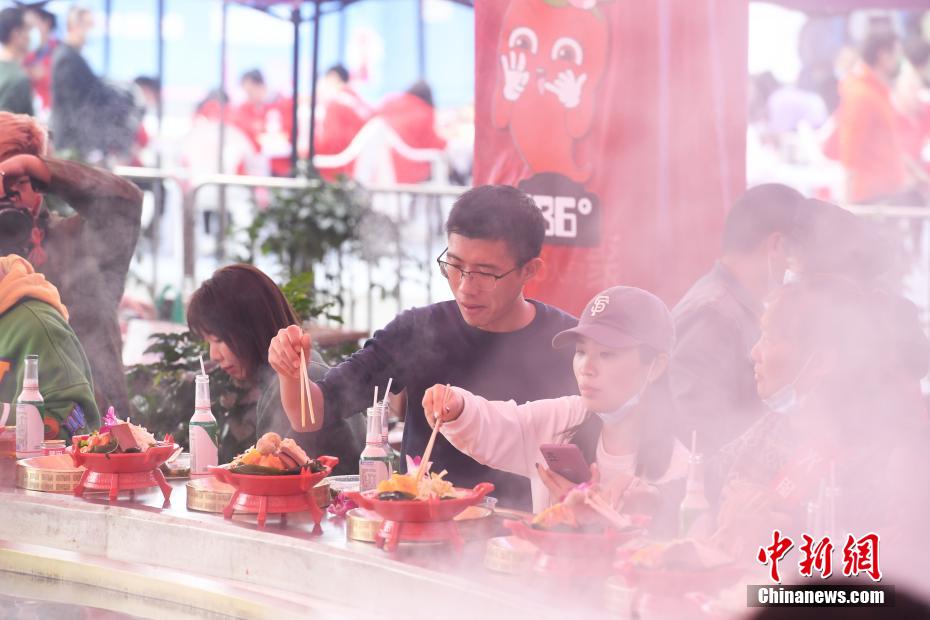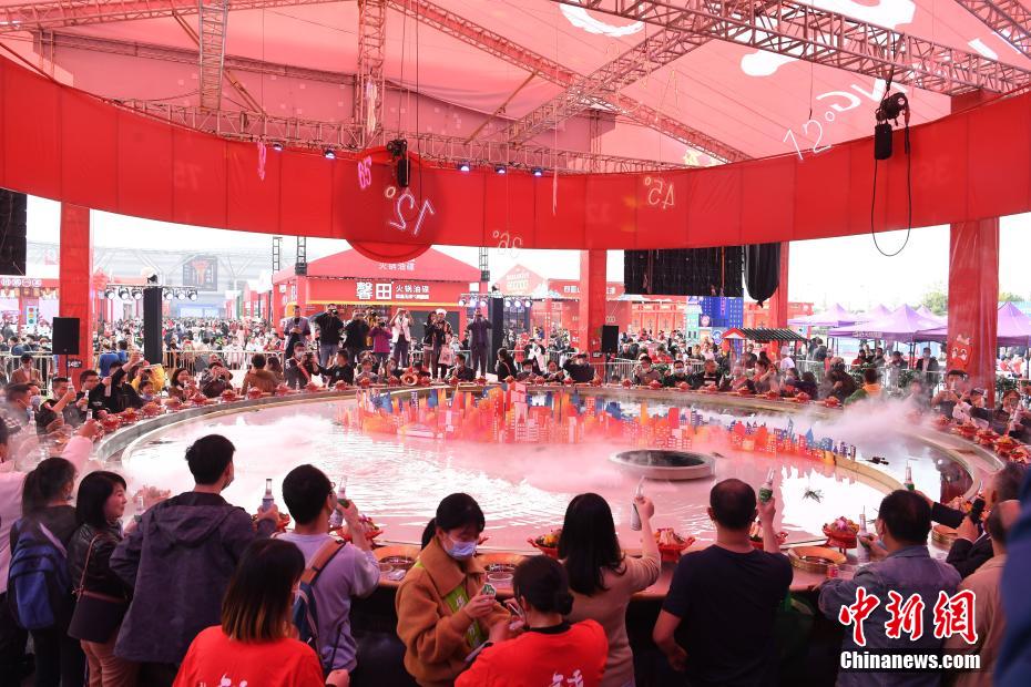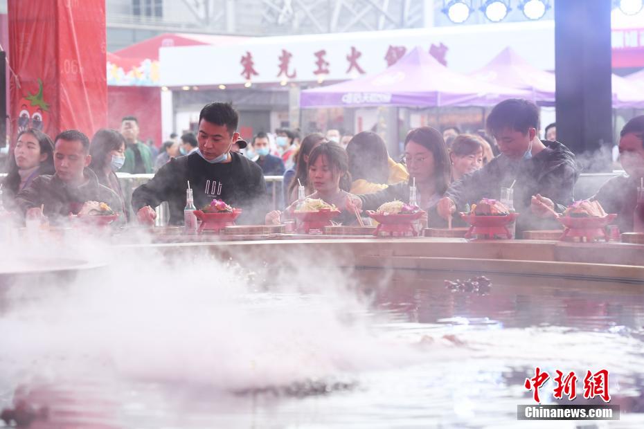 10月29日,巨型火锅亮相重庆火锅美食文化节,56位市民在现场一同开涮。当日,第十三届中国(重庆)火锅美食文化节暨火锅产业博览会在重庆国际博览中心开幕。本届重庆火锅节汇聚了来自全国的1000余家火锅产业链优质展商,带来20000多种产业链相关商品。