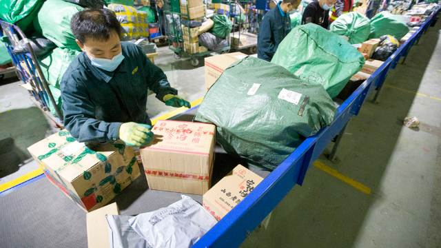 随着今年“双十一”提前拉开序幕,物流高峰提前到来。(图片来源:中新社)