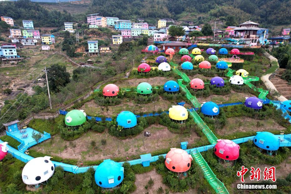 航拍福建华安七彩官畲村