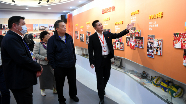 11月15日,海外华文媒体代表走进中国女排腾飞纪念馆参访。(图片来源:王东明 摄)