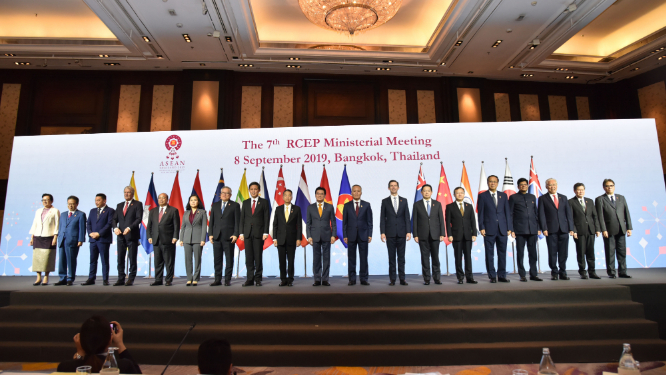 2019年9月,《区域全面经济伙伴关系协定》第7次部长级会议在泰国曼谷举行,16方经贸部长或代表出席会议。(图片来源:中新社)