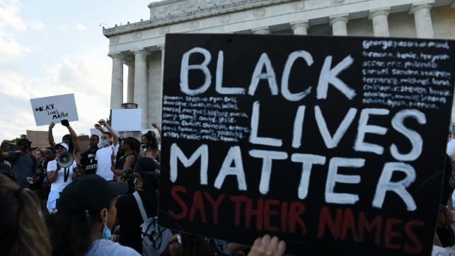 2020年5月,反种族歧视抗议活动继续在美国首都华盛顿进行。美国明州非裔男子乔治·弗洛伊德遭暴力执法死亡事件持续发酵。(图片来源:中新社)