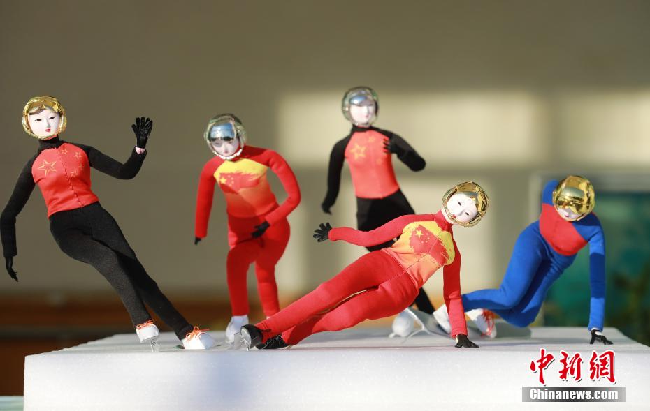 绢人作品《短道速滑》。