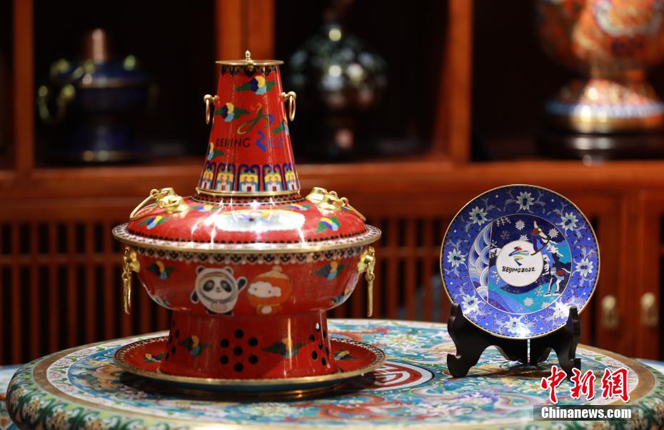 融合冬奥元素的景泰蓝火锅。