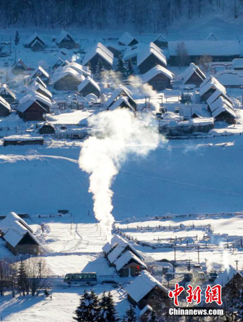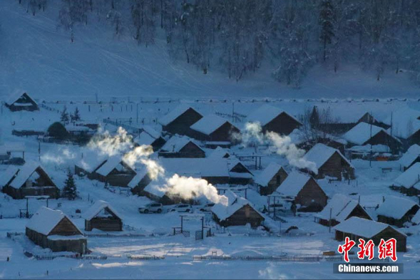 新疆喀纳斯景区禾木村冬日自然景观。(图片来源:本文图片均自中新网)
