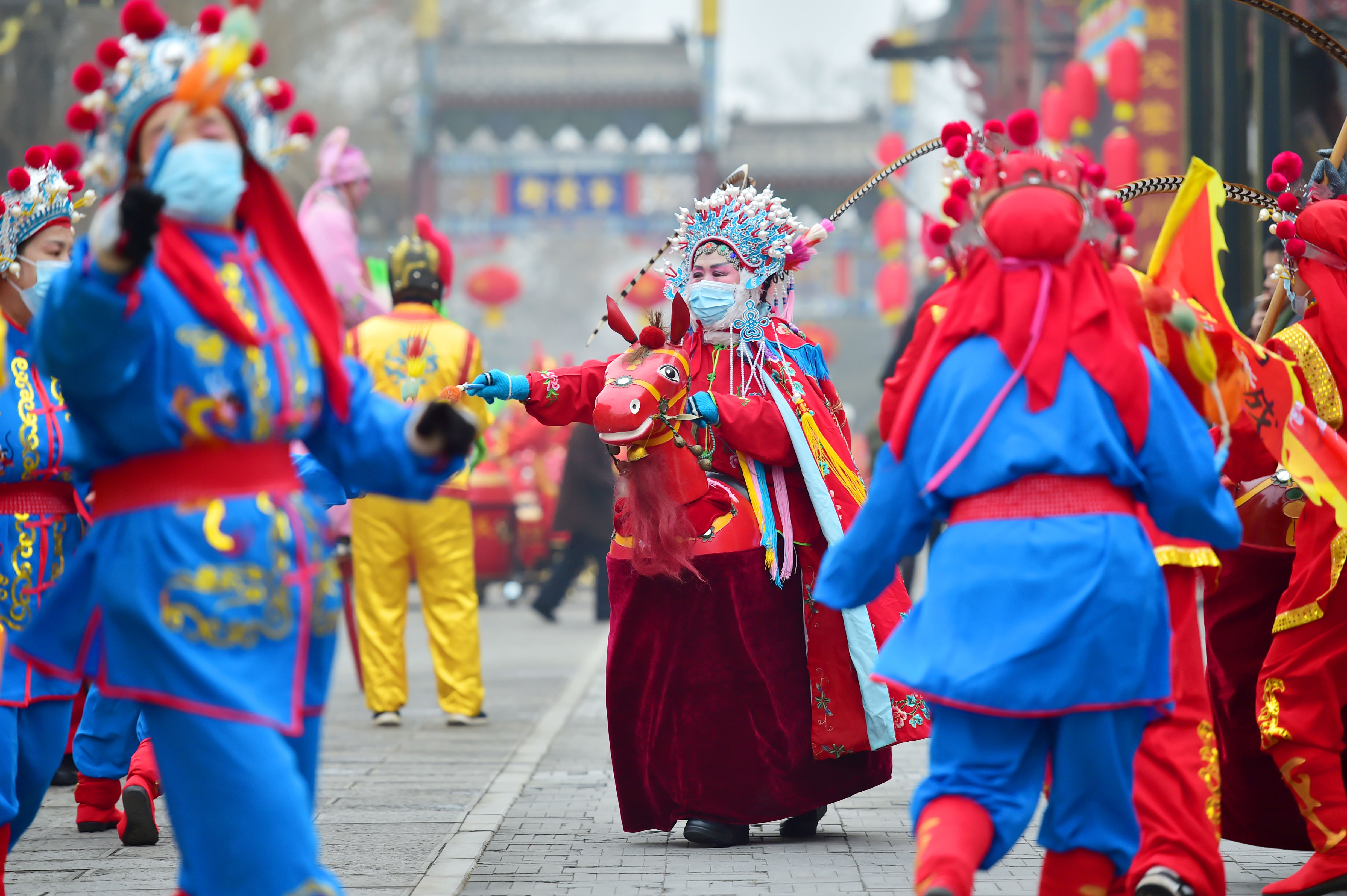 春节临近,河北省石家庄市正定县组织开展多彩非遗迎新春文化演出活动,当地民间艺人带来舞龙、战鼓、跑竹马、踩高跷等非遗表演,喜迎即将到来的虎年春节。