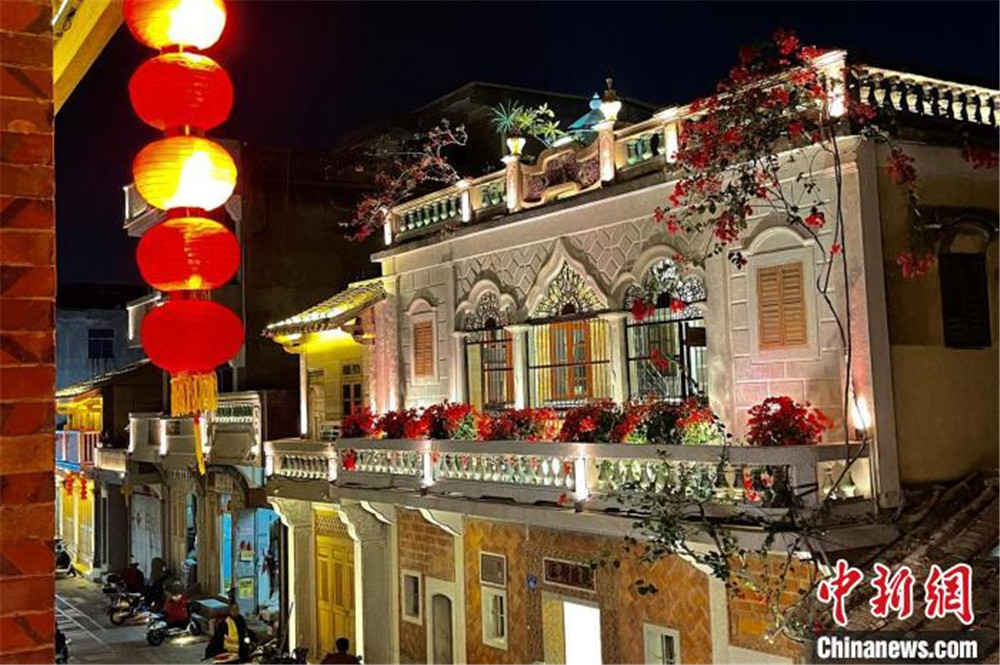 夜晚的花巷,灯光映照出独特的建筑轮廓。(图片来源:中新网)