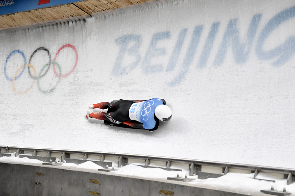 2月11日,北京2022年冬奥会男子钢架雪车比赛在国家雪车雪橇中心举行,中国选手闫文港夺得铜牌。图为中国选手闫文港在比赛中。(图片来源:中新社)