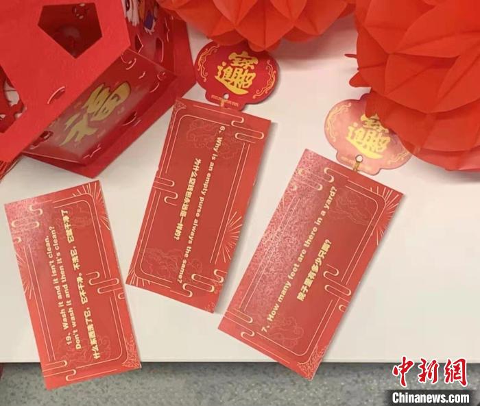 仪式庆典领域候场室的志愿者们还精心准备了多条双语灯谜,希望各国获奖运动员也能参与其中,得以亲身体验中国的传统文化和节日。一条条谜语写在一个个红色的灯笼上,妙趣横生。