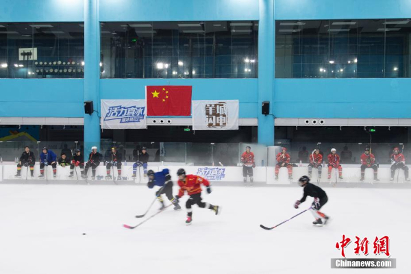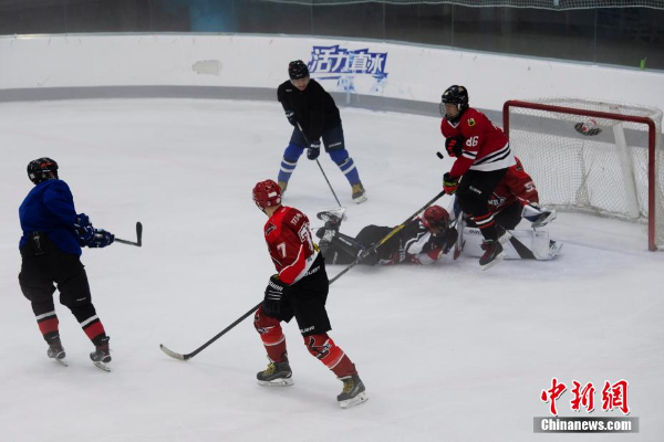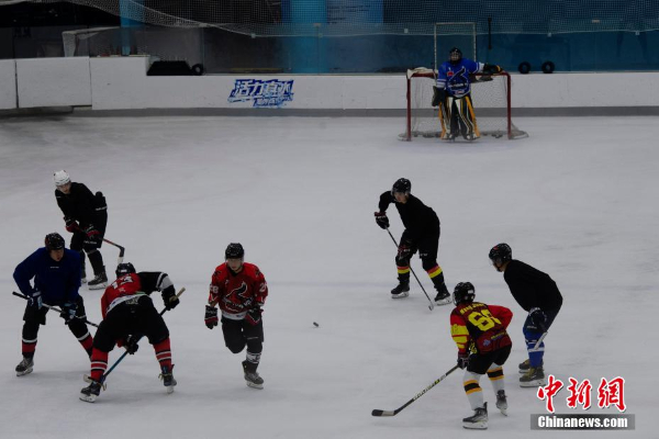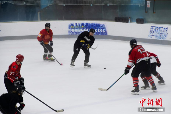 中外冰球爱好者驰骋冰场,同场竞技。