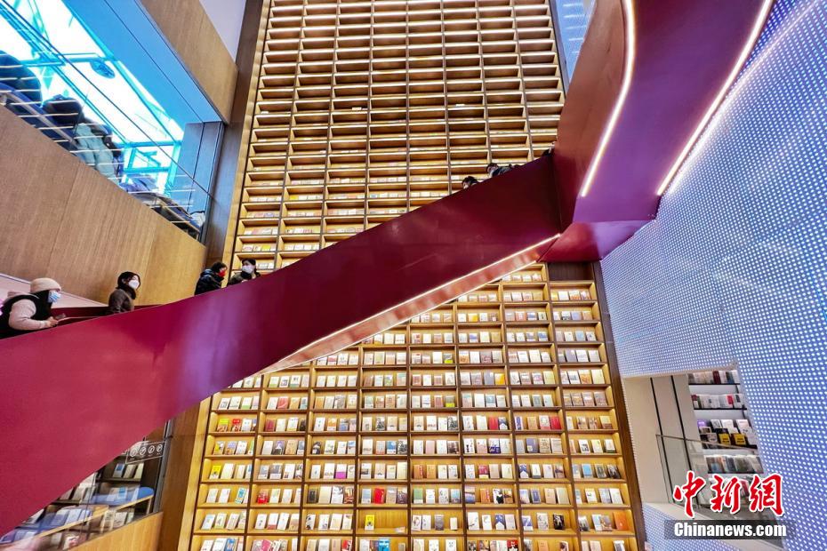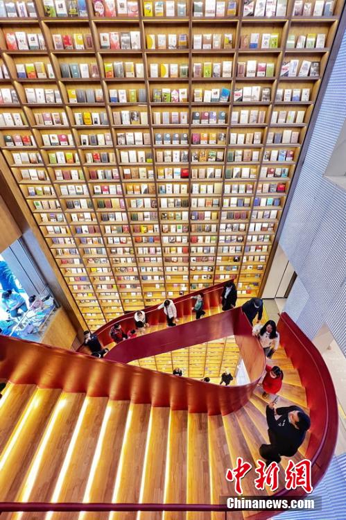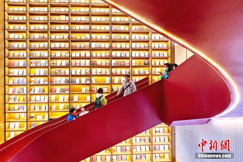 近日,江苏南京,锦创书城成为当地新晋“网红打卡点”,以设计现代的楼梯、各式风格的公共阅读区以及琳琅满目的书籍,吸引了众多市民前来。
