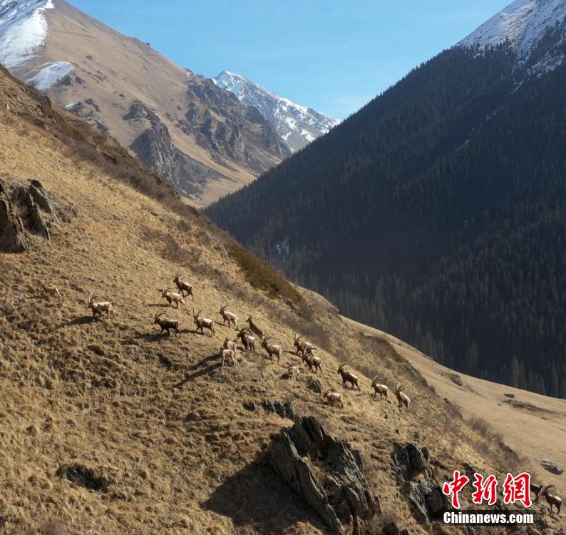 3月下旬以来,大批野生北山羊在西天山夏塔景区内觅食。近年来,该区域林业部门采取多种措施保护野生北山羊,使野生北山羊的生存环境得以明显改善,种群数量明显上升。北山羊属国家一级保护动物,在中国主要分布于新疆、甘肃西北部、内蒙古西北部等。