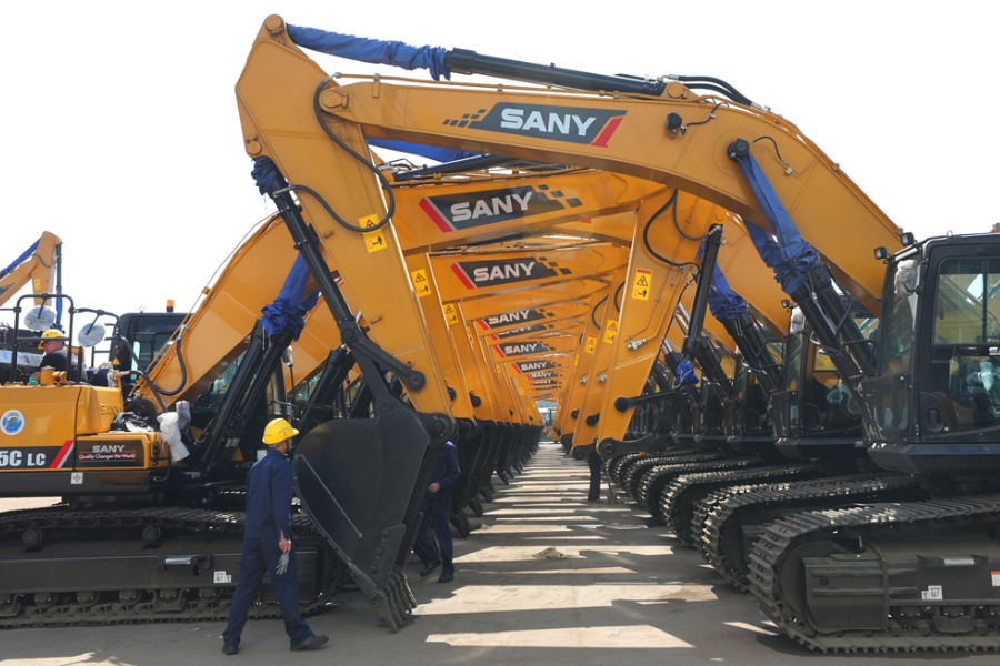 位于上海自由贸易试验区临港新片区的三一重工产业园成品车停车场。(图片来源:新华社)