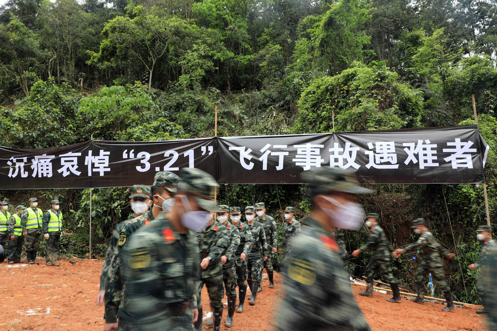 3月27日下午,广西藤县,“3·21”东航MU5735航空器飞行事故遇难者集体哀悼活动在事发地搜救现场举行,对遇难者表示哀悼。(图片来源:中新社)