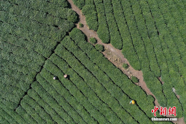 4月3日,清明节将至,中国贵州省黔南布依族苗族自治州贵定县云雾镇的茶农抢抓农时,采摘明前茶。