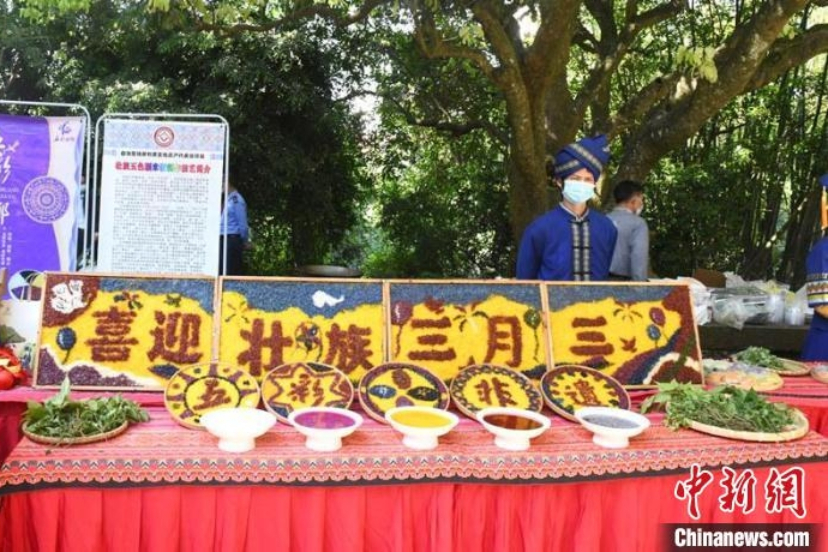壮族五色糯米饭。(图片来源:中新网)