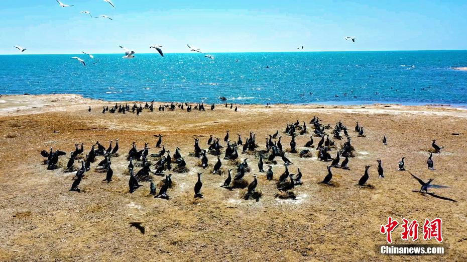 目前,青海湖五大繁殖候鸟斑头雁、棕头鸥、渔鸥、普通鸬鹚、都已来到青海湖,监测总数量7300余只。图为普通鸬鹚来到青海湖畔。(图片来源:中新网)