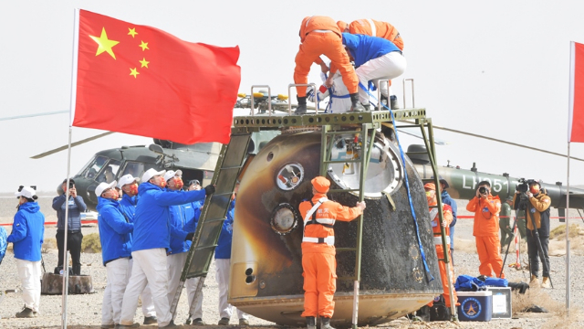 16日9时56分,搭载翟志刚、王亚平、叶光富3名航天员的神舟十三号载人飞船返回舱在东风著陆场成功著陆,三名航天员平安凯旋。此次载人飞行任务打破中国航天员在太空驻留最长纪录,受到海内外各方关注。