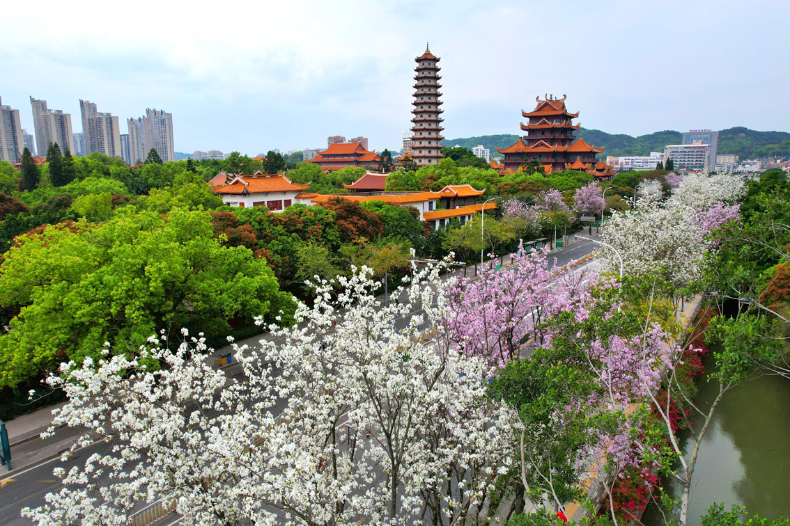 【欧洲时报网】近日,中国多条市区道路两侧的鲜花、行道树进入花期,繁花竞相开放,成为街头一景。