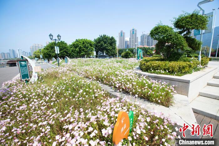 连日来,在福州马尾东江滨公园自贸区段附近,沿着东江滨公园的步道,几块成片花田里的月见草已经繁花盛开。(图片来源:中新网)