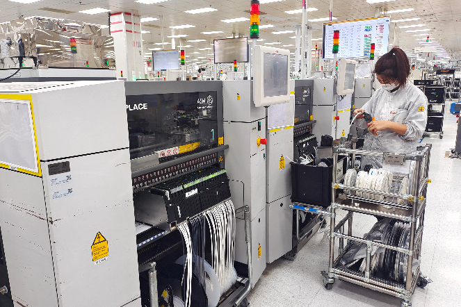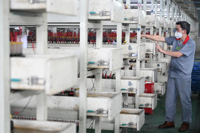 19日,在位于泉州市安溪县的一家电源电器有限公司,工人在流水线上作业。