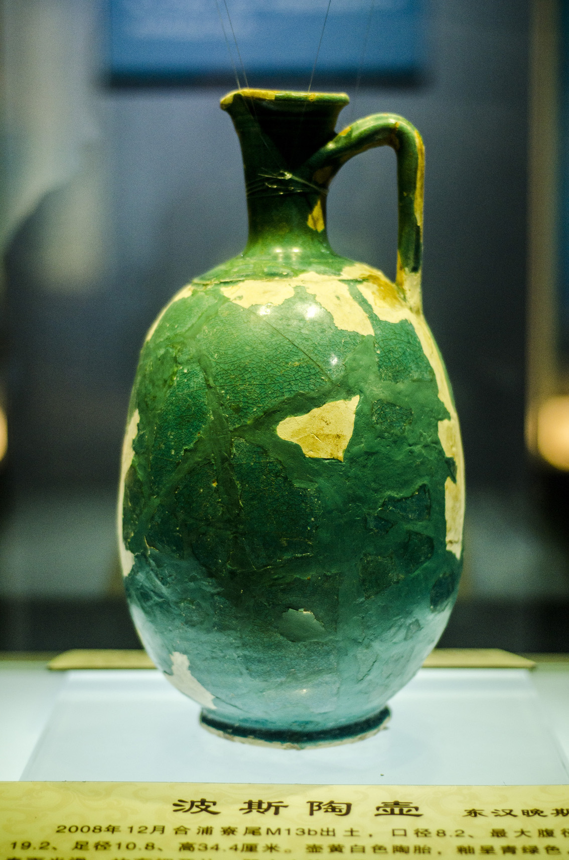 合浦拥有目前中国规模较大、保存较完好的汉代墓葬群。在两千多年前的汉代,合浦是陆上丝绸之路和海上丝绸之路重要的连接点图为在合浦寮尾13号墓出土的波斯陶壶。(图片来源:中新社)