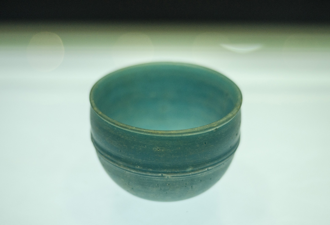 图为来自东南亚地区的湖蓝色玻璃杯。(图片来源:中新社)