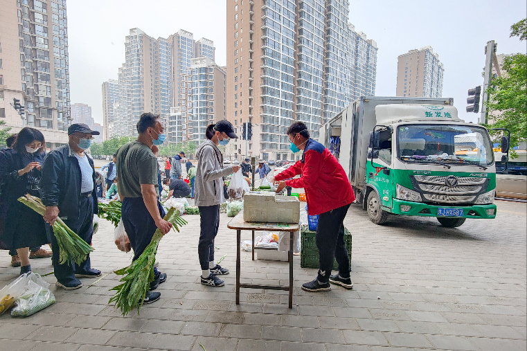 北京朝阳区部分社区开通蔬菜直通车方便市民购买。