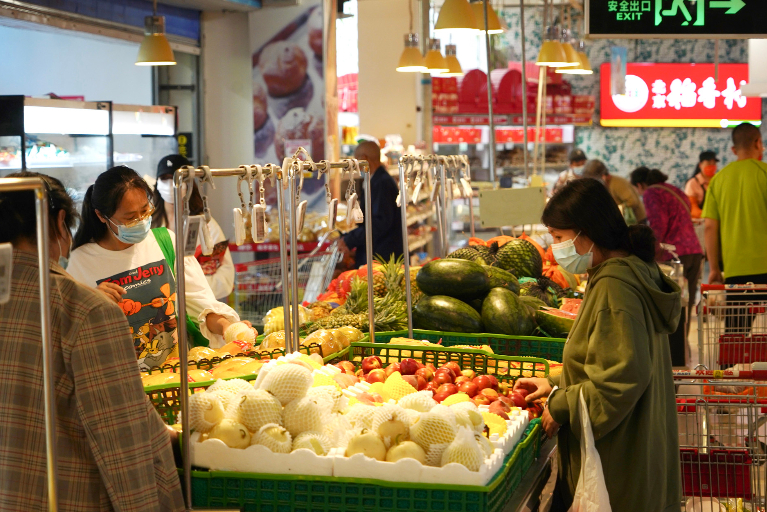 民众在北京市海淀区万寿路一超市内挑选新鲜水果。