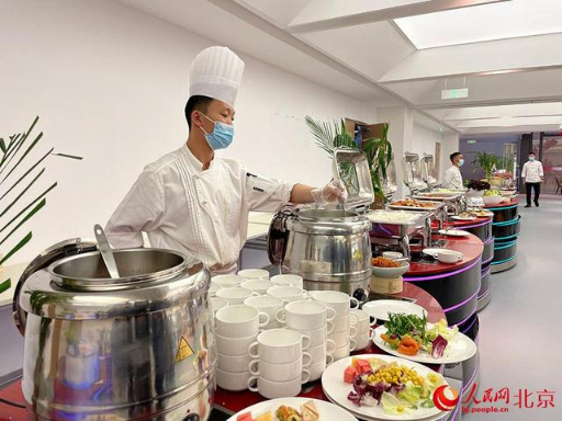 延庆奥林匹克园区内,餐饮服务人员在准备菜品。(图片来源:人民网)
