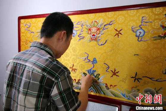 4月26日,中新网记者走进河北衡水市桃城区宫廷刺绣匠人郭庆生家,映入眼帘的是琳琅满目的中国传统宫廷刺绣作品。传统宫廷刺绣融合了中国多种民间刺绣流派的艺术精髓,具有构图精密、色彩秀丽、针法多变、主题突出等鲜明特色。