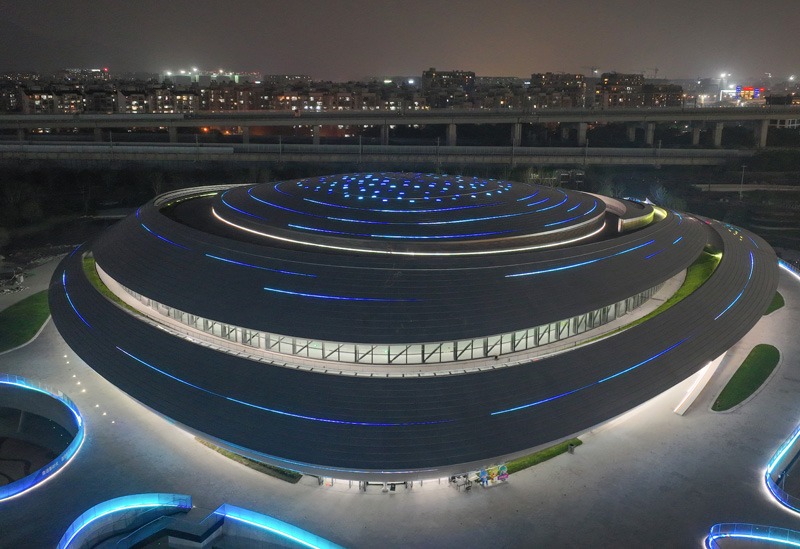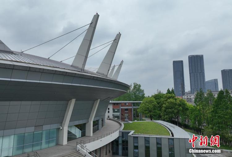 使用15年的座椅拆卸、清洗、封存再利用,服役6年的LED屏拆卸、维护再服务……在浙江杭州下沙高教园区,形如飞碟的杭州2022年亚运会击剑比赛场馆——杭州电子科技大学体育馆以“节俭办赛”理念完成了改造。2022年9月份杭州亚运会举办期间,该场馆将承担亚运会击剑、亚残运会轮椅击剑项目比赛,并将产生18枚金牌。图为空中俯瞰杭州亚运会击剑场馆。(图片来源:中新网)