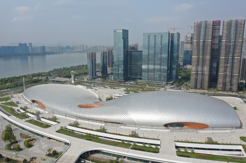 航拍杭州亚运会击剑场馆一角。