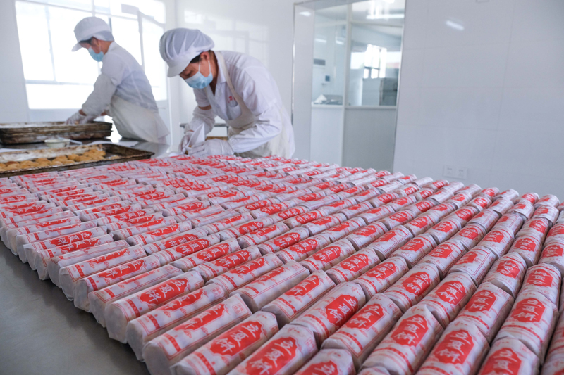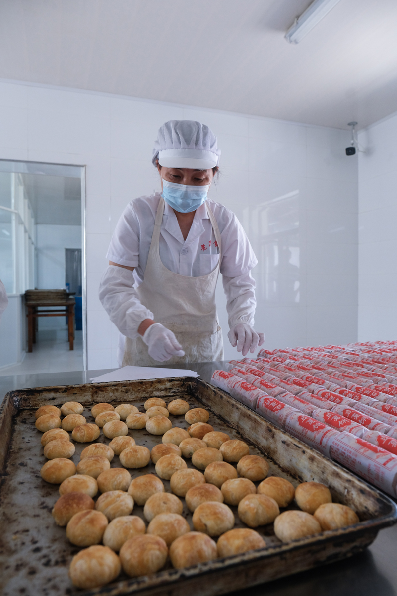 5月3日,工作人员在塘栖镇一传统糕点厂内制作“立夏饼”。(图片来源:新华社)