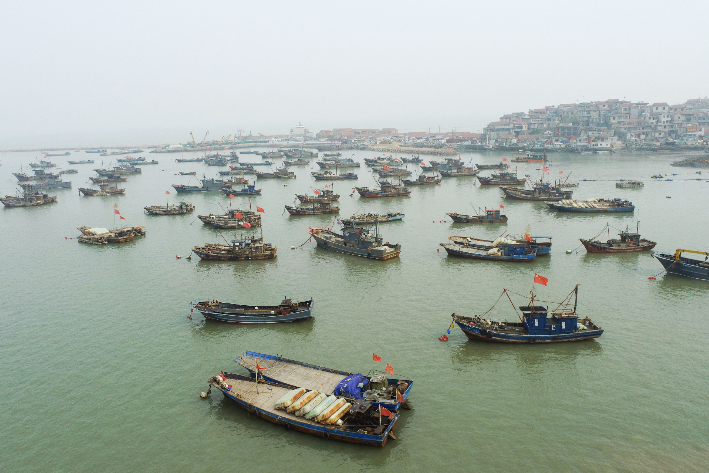 5月1日,2022年福建省海洋伏季休渔暨联合执法行动在平潭东澳中心渔港启动。本次福建海域共有11130余艘渔船休渔,最长休渔时间4个半月。福建省海洋与渔业局有关人员表示,今年伏季休渔期间,将加强同公安(海防)、海警等部门紧密协作,确保海洋伏季休渔顺利实施。图为船只停泊在平潭东澳中心渔港。(图片来源:新华社)