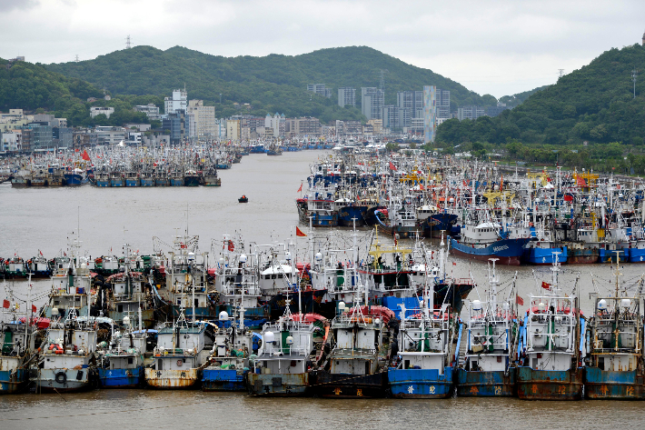 4月30日,浙江省舟山市沈家门渔港内渔船有序停泊。(图片来源:新华社)