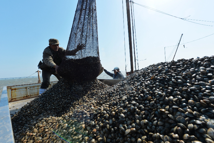 【欧洲时报网】中国渤海、黄海、东海和北纬12度以北的南海海域自5月1日12时起将全面进入海洋伏季休渔期。休渔期到来的同时,人工养殖贝类捕捞作业在养殖区内加紧捕捞收获,满足市场鲜货需求。